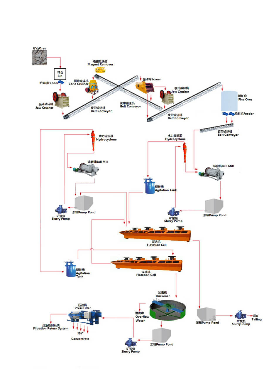 After shaking table separation, send the concentrate to the high-intensity magnetic separator to remove iron and mica, and then feed the concentrate into next magnetic separator for further sorting.